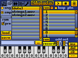 To use this technique, you first need multiple samples of the same instrument, recorded at different notes (for example c-3, c-4, c-5 and so on). I'll only demonstrate this on two samples of a string. You can try it yourself by grabbing this set of [bass samples]/nitroustracker/(content/instruments/bass.zip) from the Open Path Music Library. Copy your samples to your card, fire up NitrousTracker and go to the file browser.
