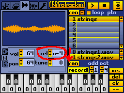 Trackers are stupid. They just play back samples at different pitches so we think we are hearing instruments playing different notes. Of course we cannot be fooled that easily, because we notice that a sample sounds artificial when played back at a too high or too low pitch. Also, when samples are played at higher pitches, they get shorter. On the other hand, when we play a real instrument, like the piano or the violin, we can adjust length, pitch and several other properties of it's sound. To narrow the gap between real world instruments and pure samples, trackers have the concept of instruments. This section describes how to use the power of (tracker) instruments to make your songs sound more like they are played by (actual) instruments.