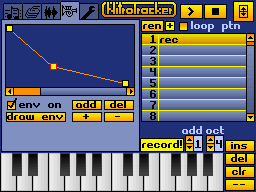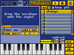 Now your samples will play as long as you hold the key, but they will sound unnatural again because they keep the same amplitude. To fix this, go to the instrument (trumpet) tab. The box you'll see there is the envelope editor. To create an envelope, press "draw env".