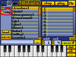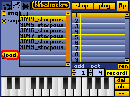First of all, we need samples. We all like retro sound, so we use this nice LSDj sample pack from the Freesound project kindly provided by starpause. Download the pack and unzip it to a new folder on your card. Then put it into your DS and start NitrousTracker.